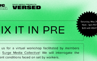 We will discuss the current conditions faced on set by workers and dream up alternatives folks would like to see across the industry!Join us for a salon-style ~virtual~ workshop on the way the film process is organized, how power roles play out, what works, and what must change while generating alternative practices! We will discuss and explore the current conditions faced on set by workers and dream up alternatives folks would like to see across the industry on set. FACILITATORSAnna Rosa, filmmaker, media theorist and activistJules Retzlaff, otherwise known as Cereal For The Kids, is a born and raised, queer [...]