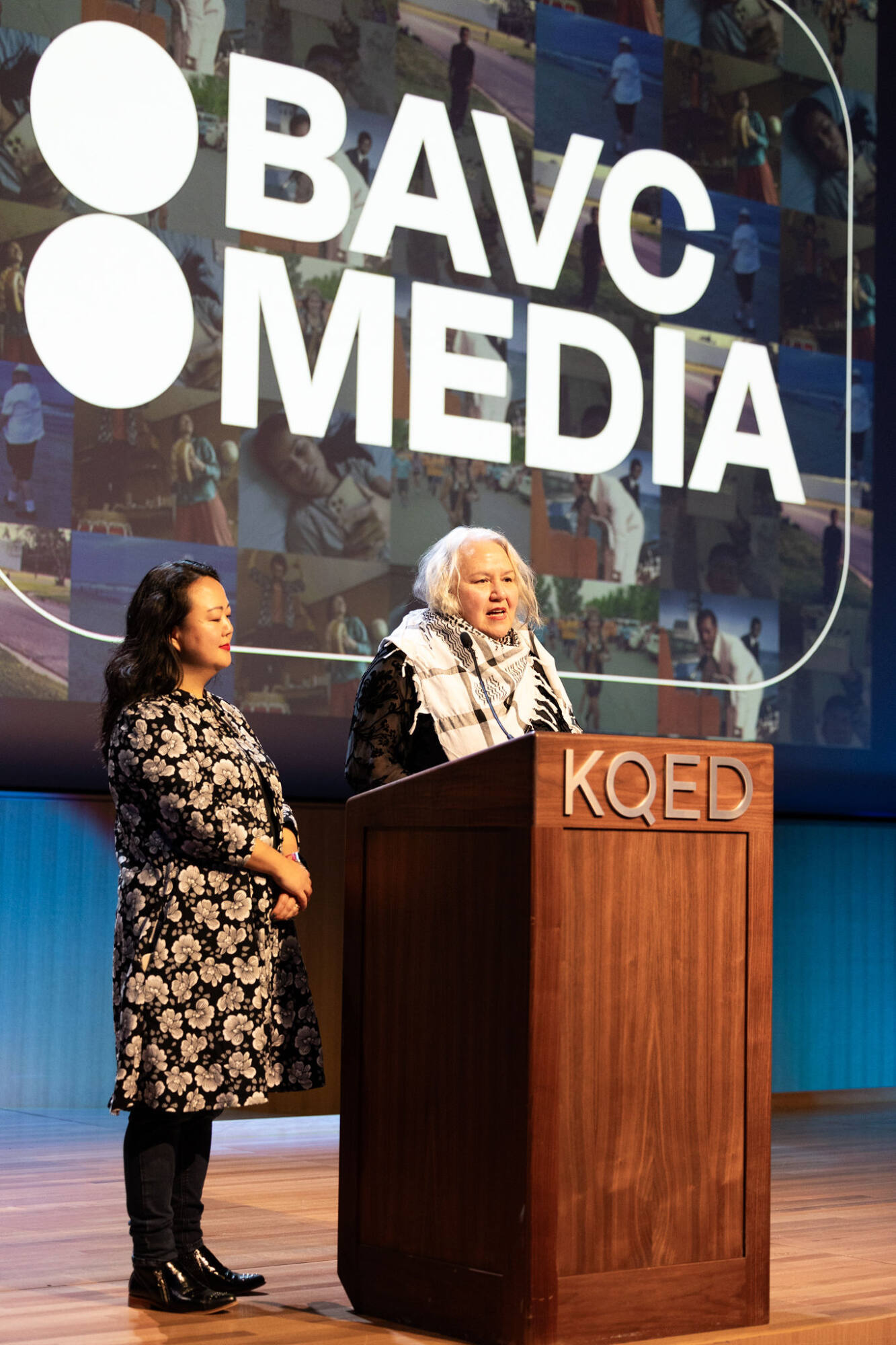 On Wednesday, February 28, after 10 months together, 7 exceptional filmmakers previewed their works in progress to a live audience in San Francisco at the KQED Headquarters and virtual viewers across the country. The culminating event for the 2023 BAVC MediaMaker Fellows began with words from BAVC Media Executive Director Paula Smith Arrigoni, 2020 Fellow Colette Ghunim, and Fellowship Co-Director’s, Dawn Valadez and Jin Yoo-Kim. Each fellow then pitched their project and shared a new clip, demonstrating the progress they’ve made this year, before providing a stirring introduction to the next filmmaker. Their immense talent and their affection for each other was clear.
