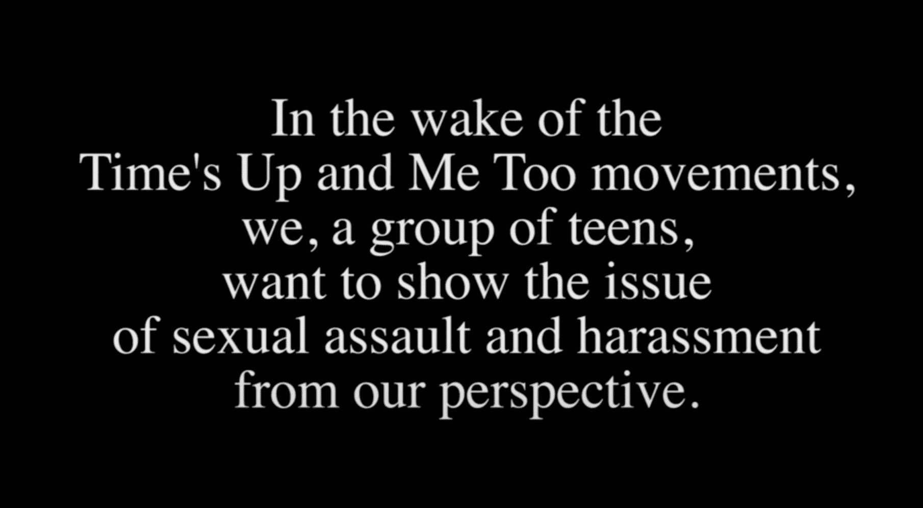 #TeensToo: produced by our Student Board – premiered on International Women’s Day 2020. The film takes viewers on a journey of what it feels like for our next generation of leaders to be growing up in the age of the #TimesUp and #MeToo movements. It highlights personal accounts of sexual harassment at the youngest of ages, as well as discusses potential solutions to decrease toxic masculinity and increase advocacy for equality and lasting change.